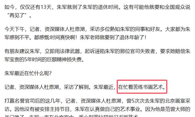 因此当时,这位记者再次出动,询问了朱军日前正苦练书画艺术。