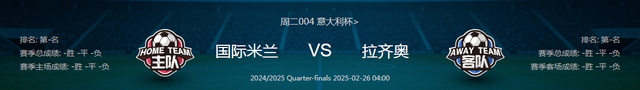 国际米兰在主场作战的优势将更为明显,如果球队采取积极主动的进攻策略,而拉齐奥则采取稳守反击的战术,那么比赛的节奏和比分很可能会受到影响。