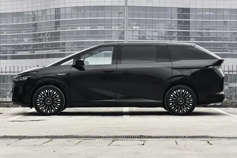 新车配备电动侧滑门、隐藏式门把手,左后翼子板处设有油箱口,右侧为充电口。选装20英寸星耀悬浮轮辋(原价8000元,目前限时免费)。车尾带有专属“PowerX”超级增程标识,全系标配辅助驾驶“小蓝灯”。车身尺寸为5316/1988/1785mm,轴距3160mm,定位7座中大型MPV。
