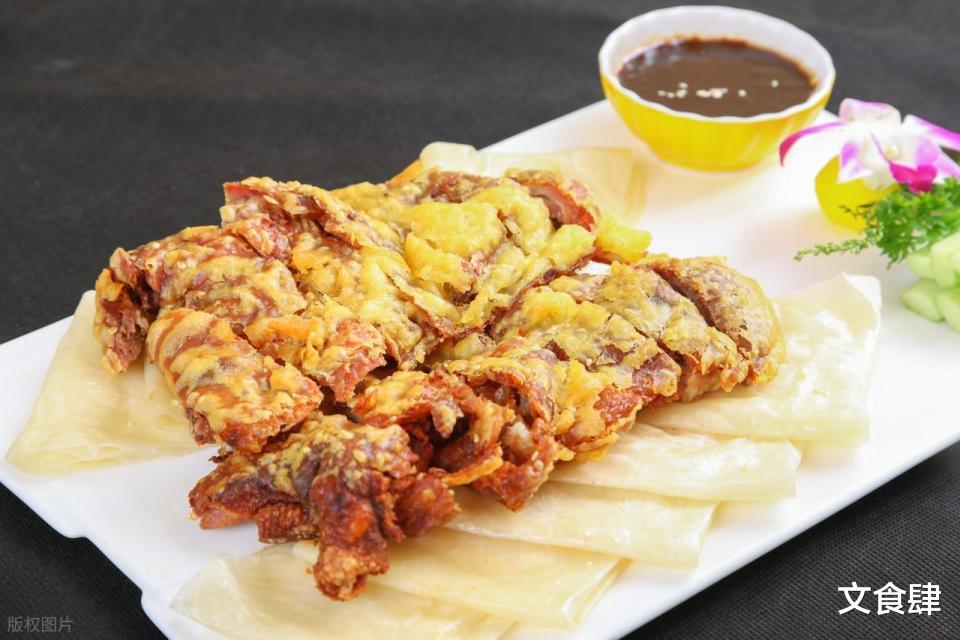 这道菜是清代宫廷技艺的民间传承,已入选“河北十大经典名菜”。传统吃法可搭配小饼、葱丝、甜面酱,形似北京烤鸭,但更具北方豪迈风味。