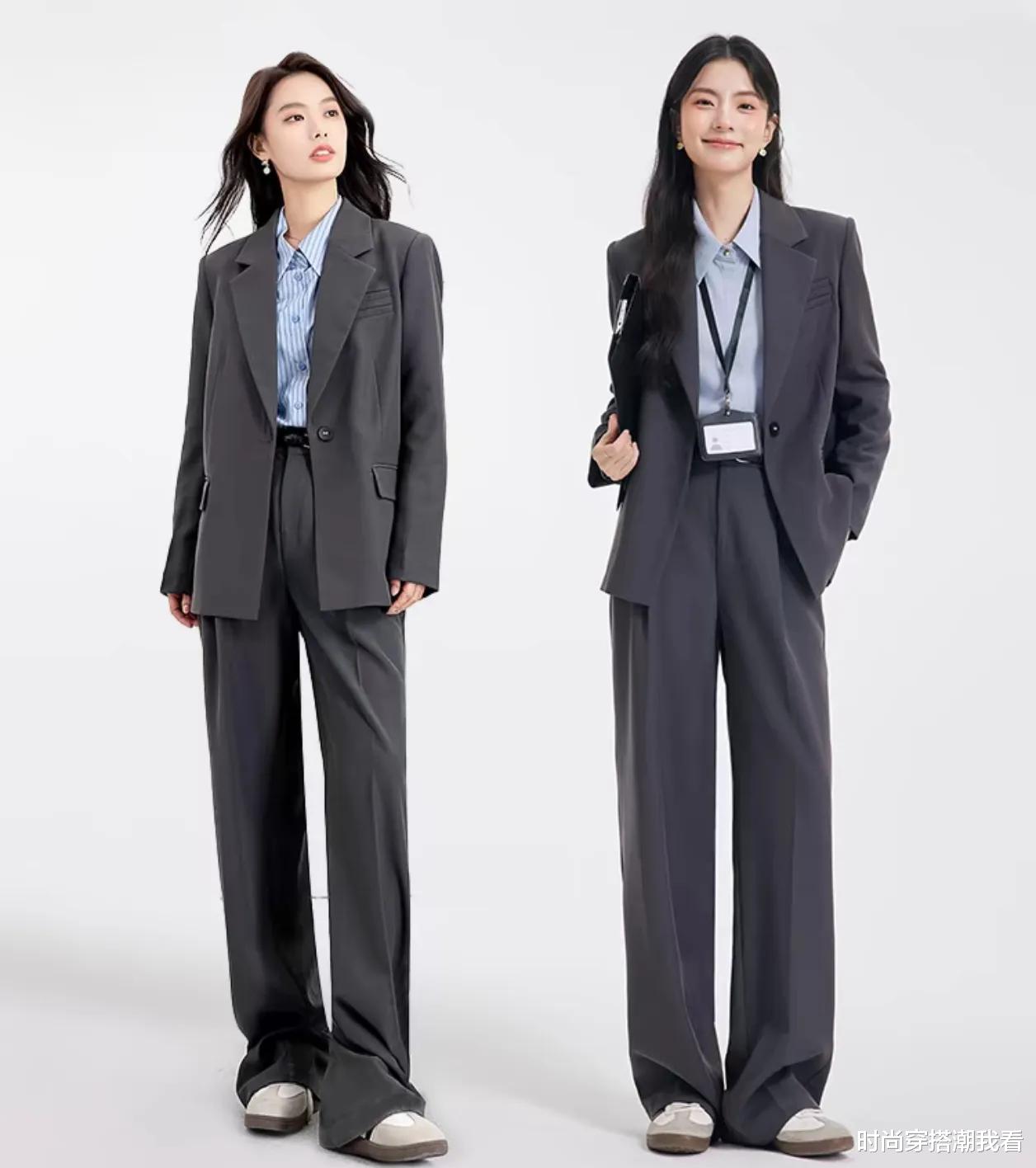 同色系穿搭同色系穿搭是早八人最省心的选择。它不仅能减少搭配上的烦恼,还能轻松营造出整体协调的美感。比如,选择一件浅灰色的西装外套,内搭同色系的衬衫或打底衫,再配上一条深灰色的直筒裤。