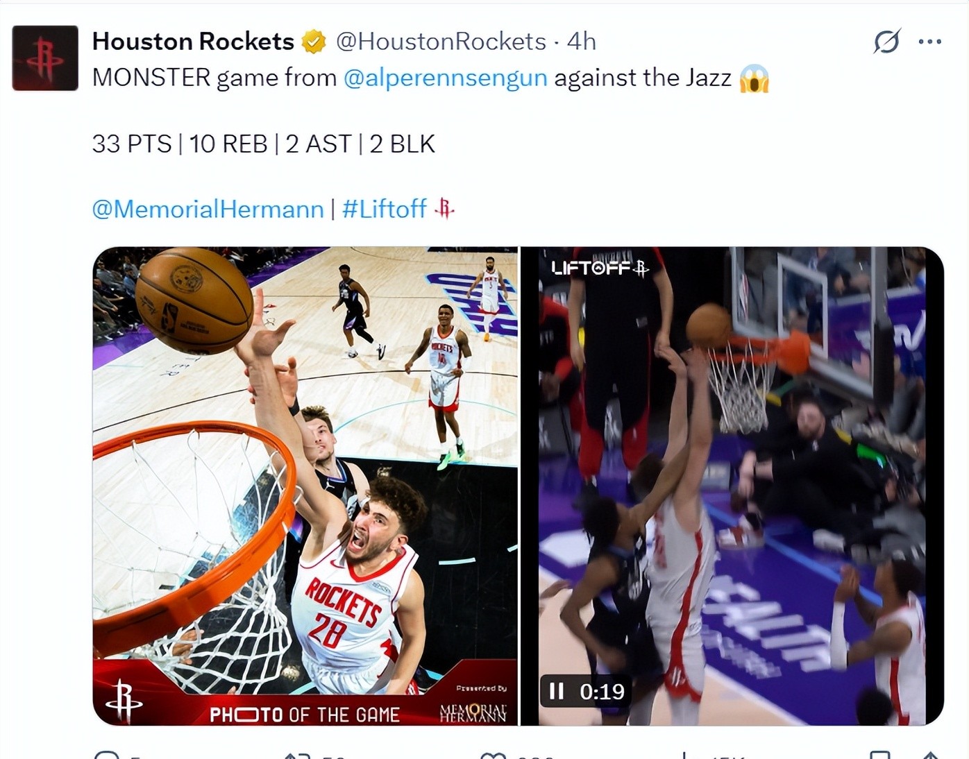 这场比赛,申京简直是光芒万丈!他出场32分钟,19投11中,罚球13中11,轰下33分10篮板2助攻2盖帽,命中率高达57.9%!火箭官方更是对其赞赏有加,这足以说明申京在球队中的重要性。他不仅仅是一个得分点,更是一个攻防兼备的全能型中锋,未来不可限量。