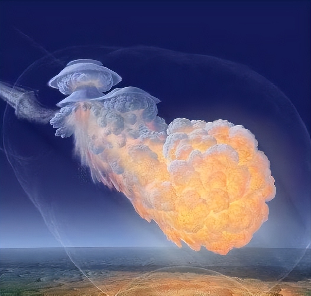 数秒后,一声巨响震彻天地,火球在距离地面5-10公里的高空发生爆炸。