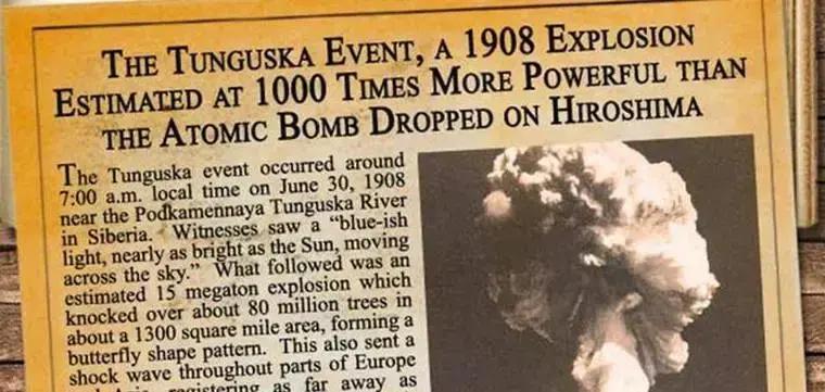 这场被称为“通古斯大爆炸”的事件其威力相当于2000万吨TNT炸药,约为1000颗广岛原子弹。