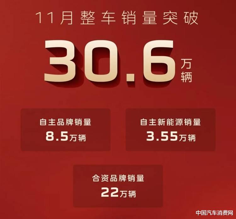 中国一汽公布了其11月份30.6万辆的销量成绩,合资品牌卖了22万台,是绝对的销量主力;自主品牌销量为8.5万台,自主品牌新能源销量为3.55万辆。红旗品牌11月份单月销量40506辆,红旗新能源产品销量同比增长60.8%;一汽奔腾11月销量19520辆,其中包括15793辆的新能源车型。