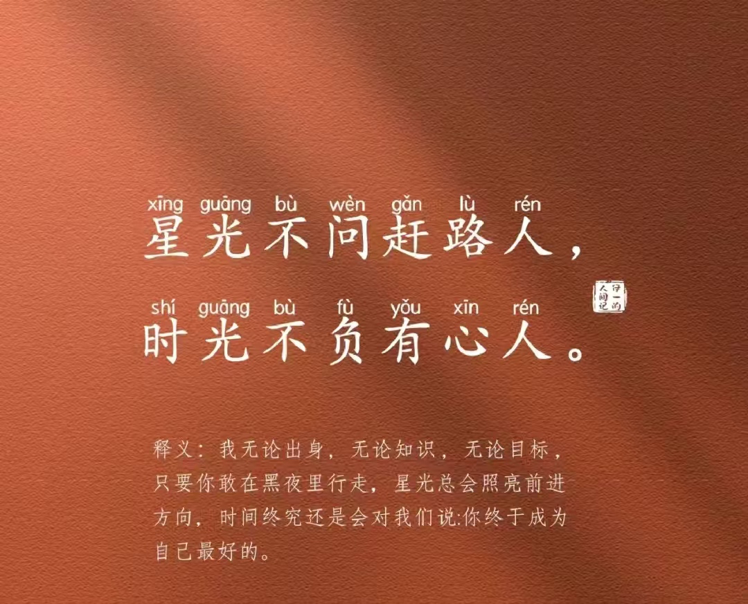 但这两个字更是一种激励,一种向往,一种绝不放弃绝不气馁的坚定:你黄金般的光芒别隐藏,尽情闪耀吧,我与你一同前行。