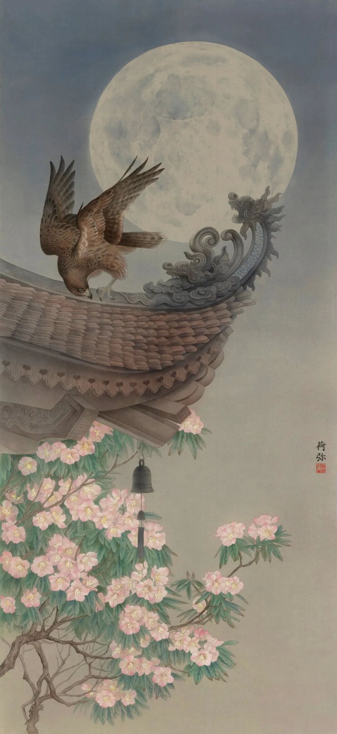 阮荷弥 《飞羽》 绢本 200×110cm