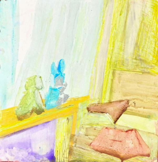 邢凯玥 《午间的床》 水溶油画棒、色粉 30×30cm 2025
