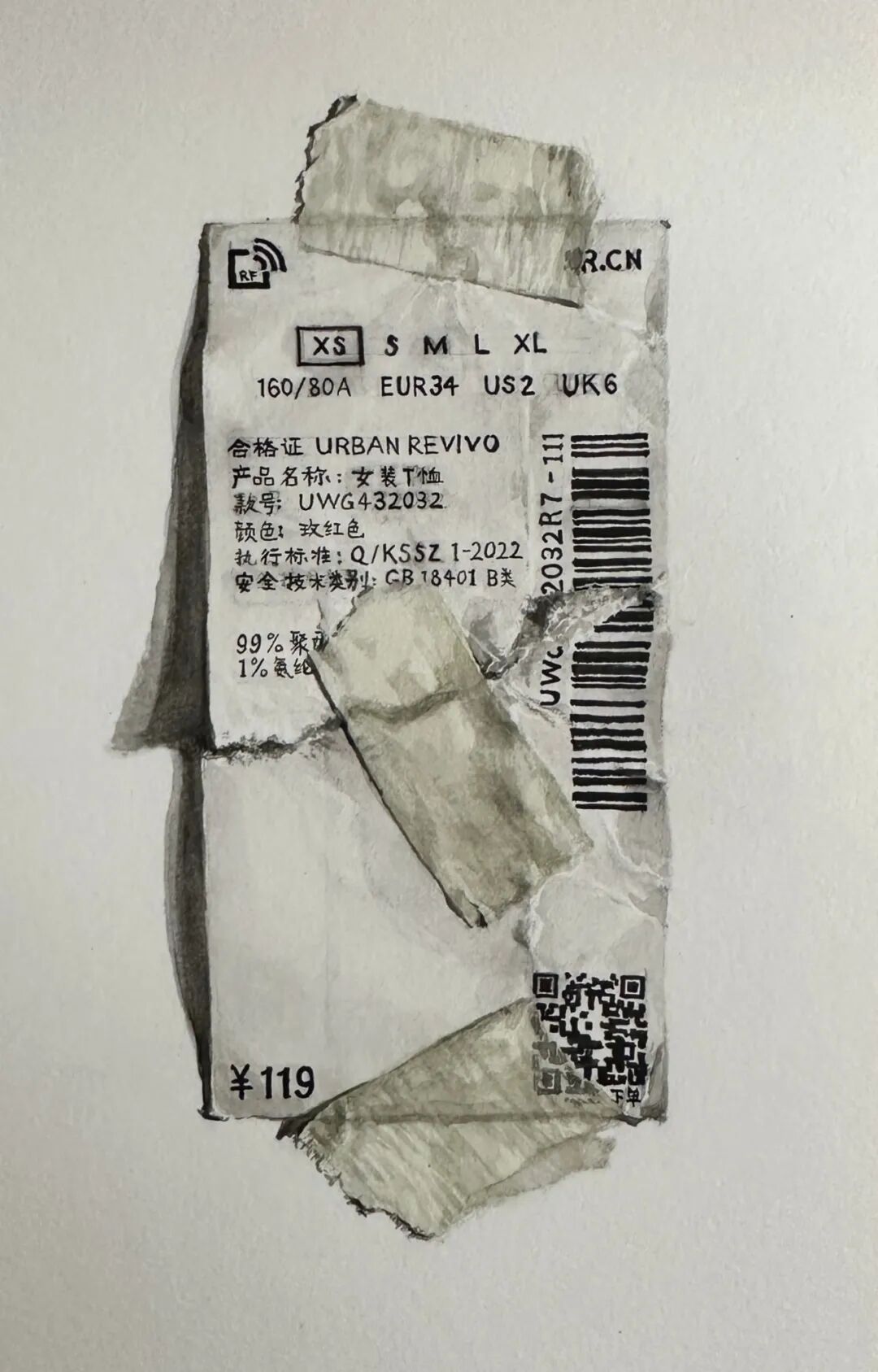 邹卓涵 《xs》 纸本水彩 18×10cm 2024