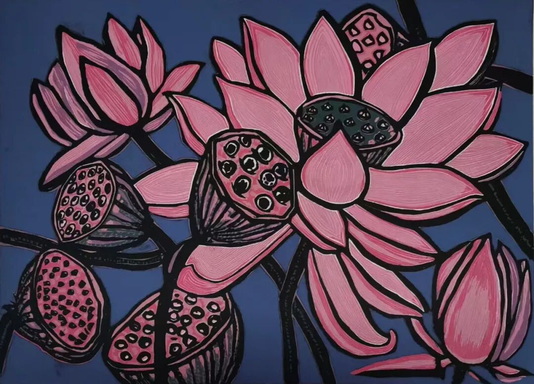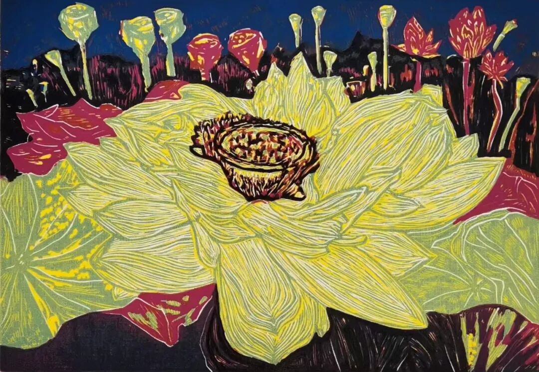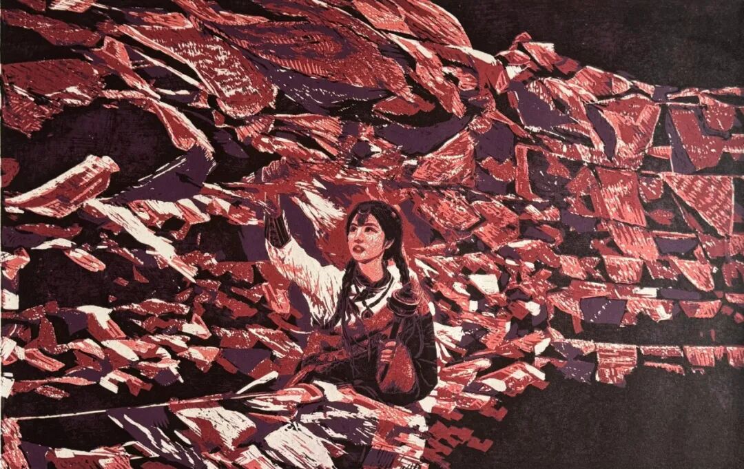 阮佳 《青春绽放》 木刻版画 70×110cm 2023