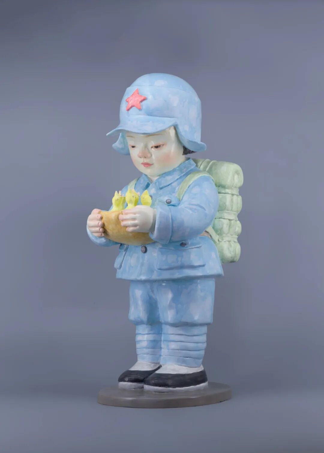 严玉 《小红军与小鸟》 树脂着色雕塑 56×39×38cm 2021