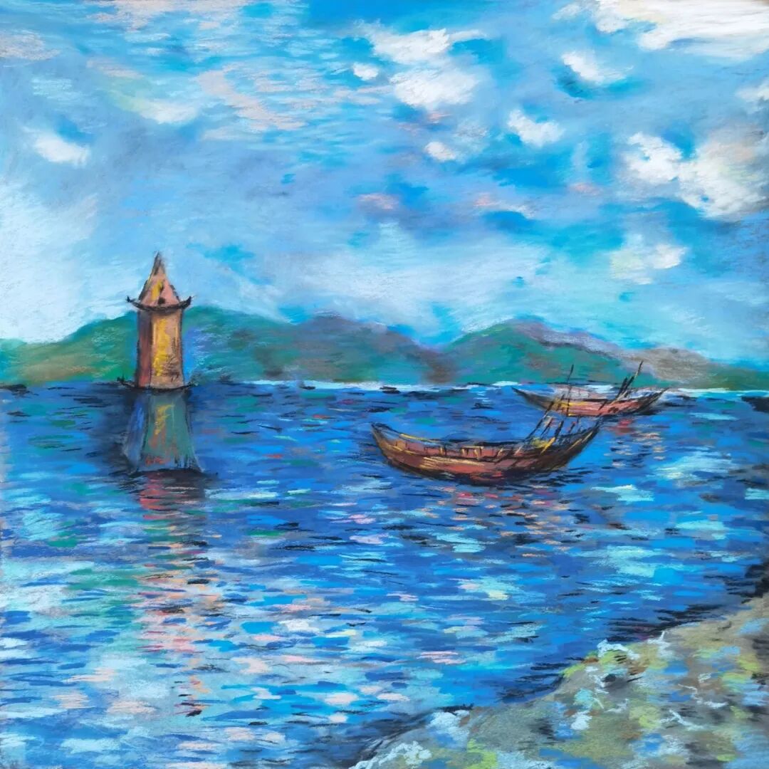 苇真 《过往皆帆影 明灭俱灯塔》 色粉画 50×50cm 2025