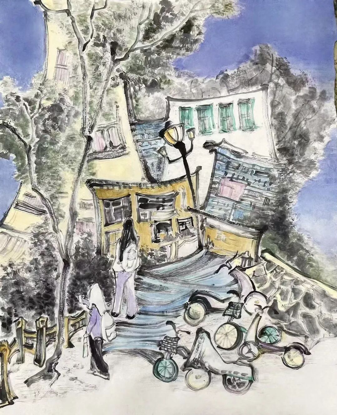 在创作中,我以传统国画笔墨为载体,将女性意识融入市井烟火的叙事之中。作品常以菜市场、街巷等公共空间为背景,通过女性的身姿与互动细节,解构传统叙事中“女性作为附属”的刻板印象,重构她们作为生活主导者、空间建构者的身份。我相信,水墨的晕染与线条的张力,既能承载东方美学的含蓄,也能传递当代女性坚韧、清醒且充满力量的精神内核。