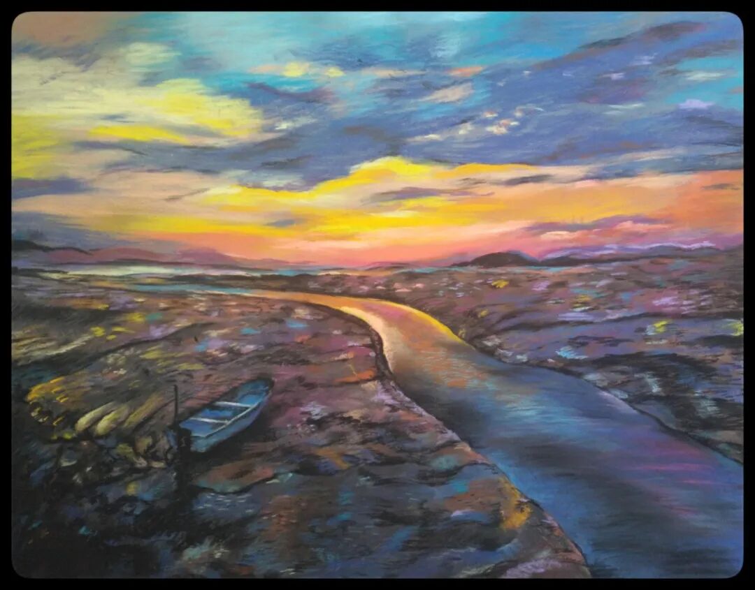 苇真 《夕阳下的杨柳坑》 色粉画 90×120cm 2022