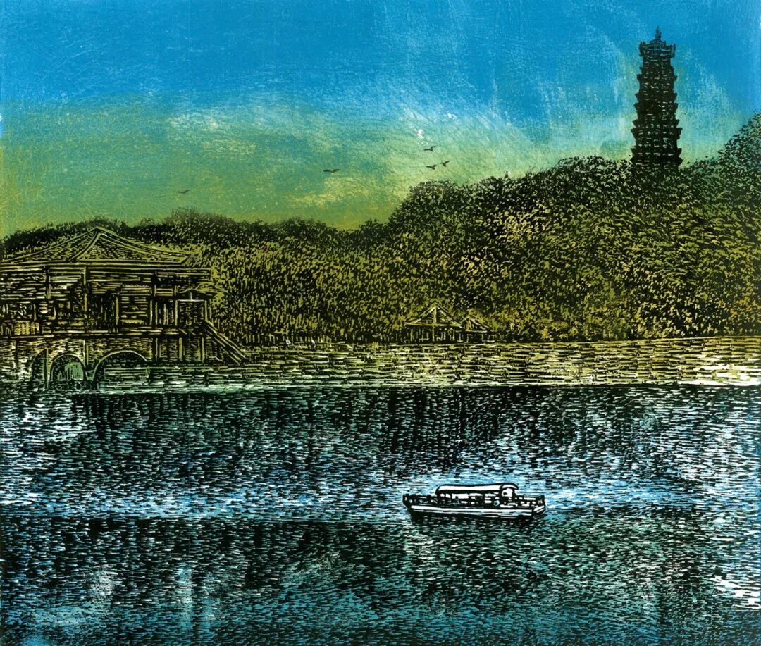 李雪芳 《惠州西湖》 套色木刻 42×50cm 2024
