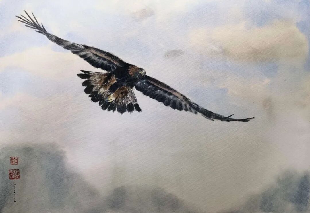 赵艳霞 《高飞》 纸本水彩 34×49cm 2021