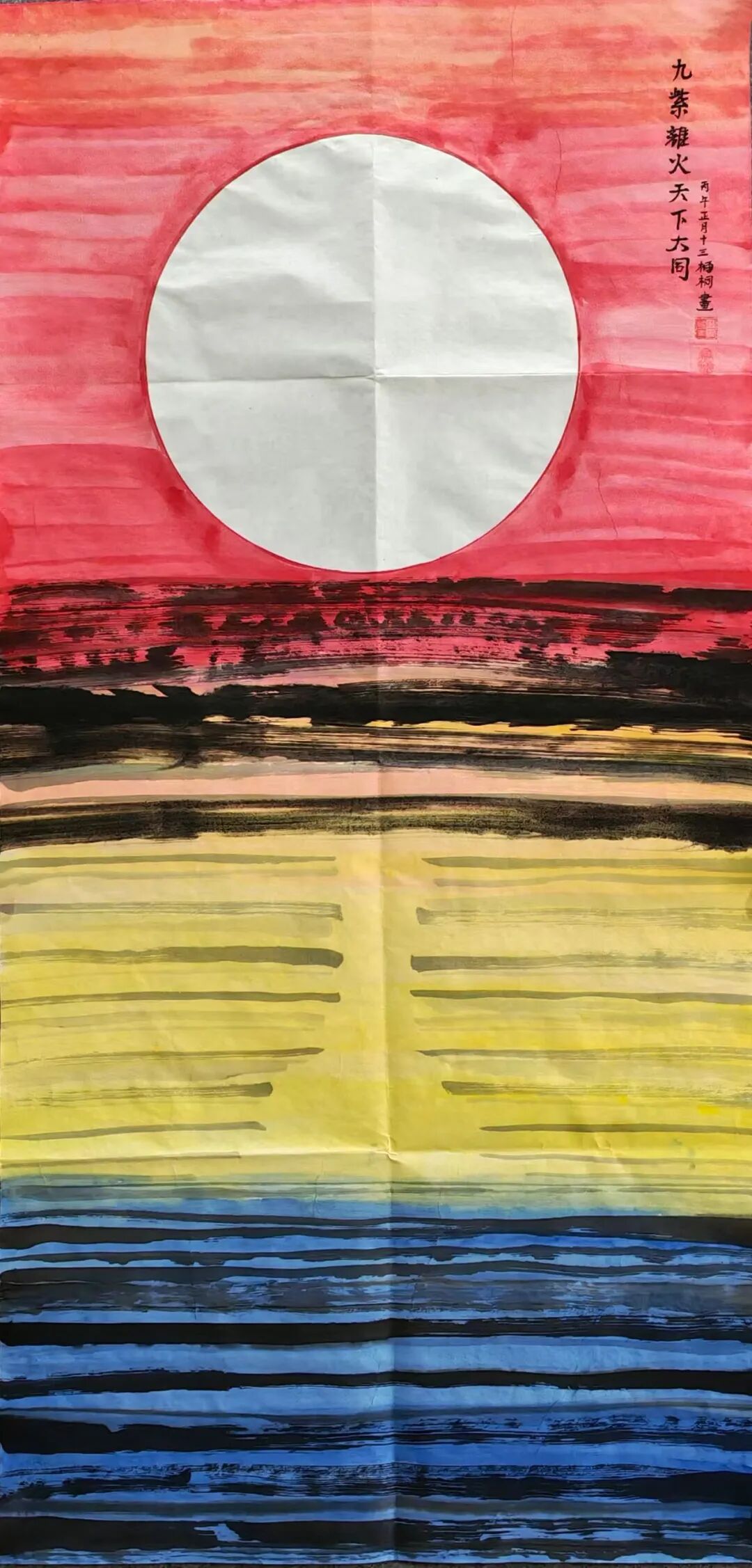潘松艳 《九紫离火天下大同》 宣纸,墨汁,国画颜料 138×69cm 2026