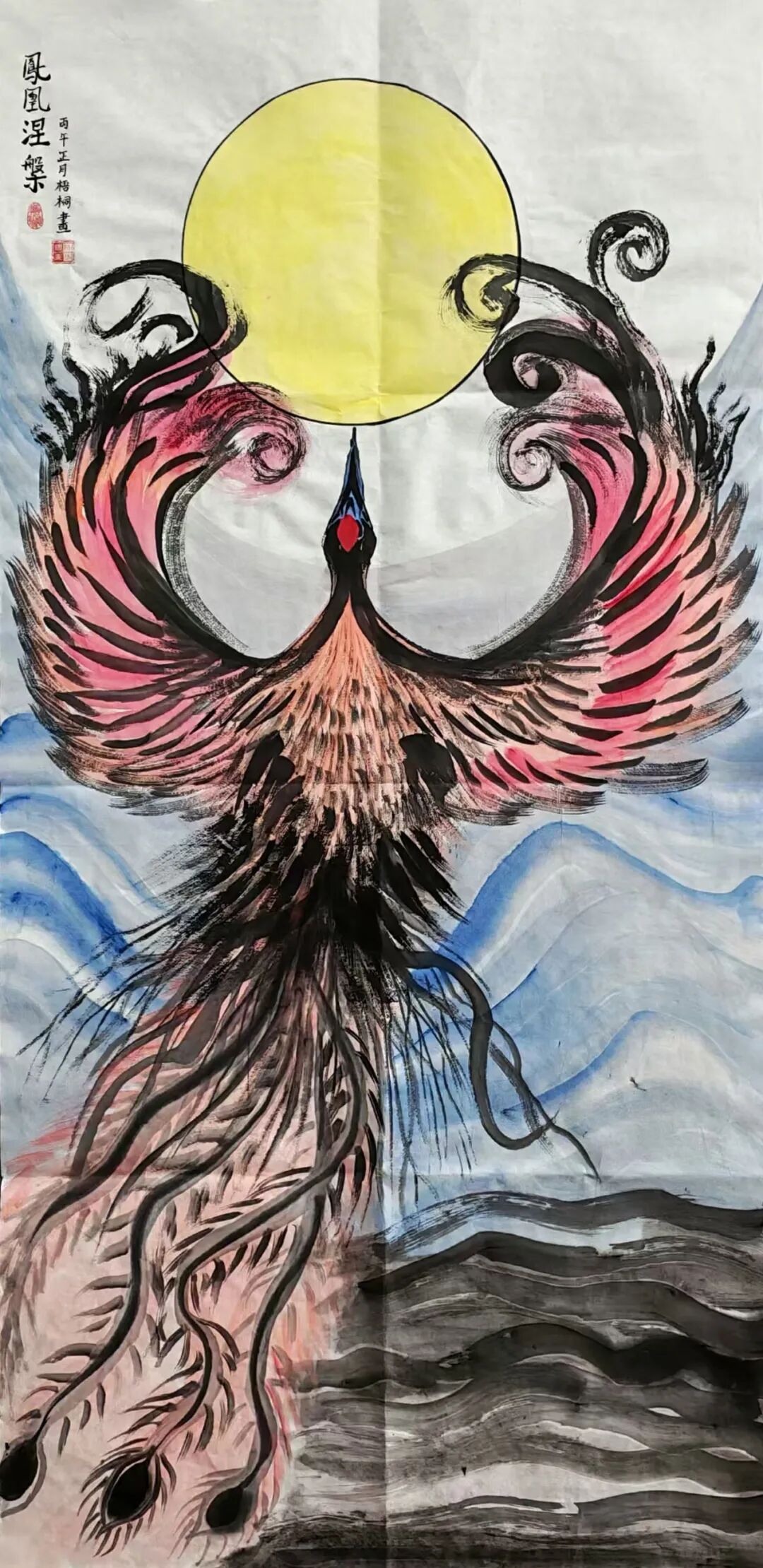 潘松艳 《凤凰涅槃》 宣纸,墨汁,国画颜料 138×69cm 2026