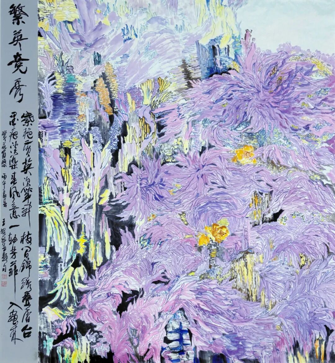 王妮 《繁英竞秀》 中国画 180×175cm 2025