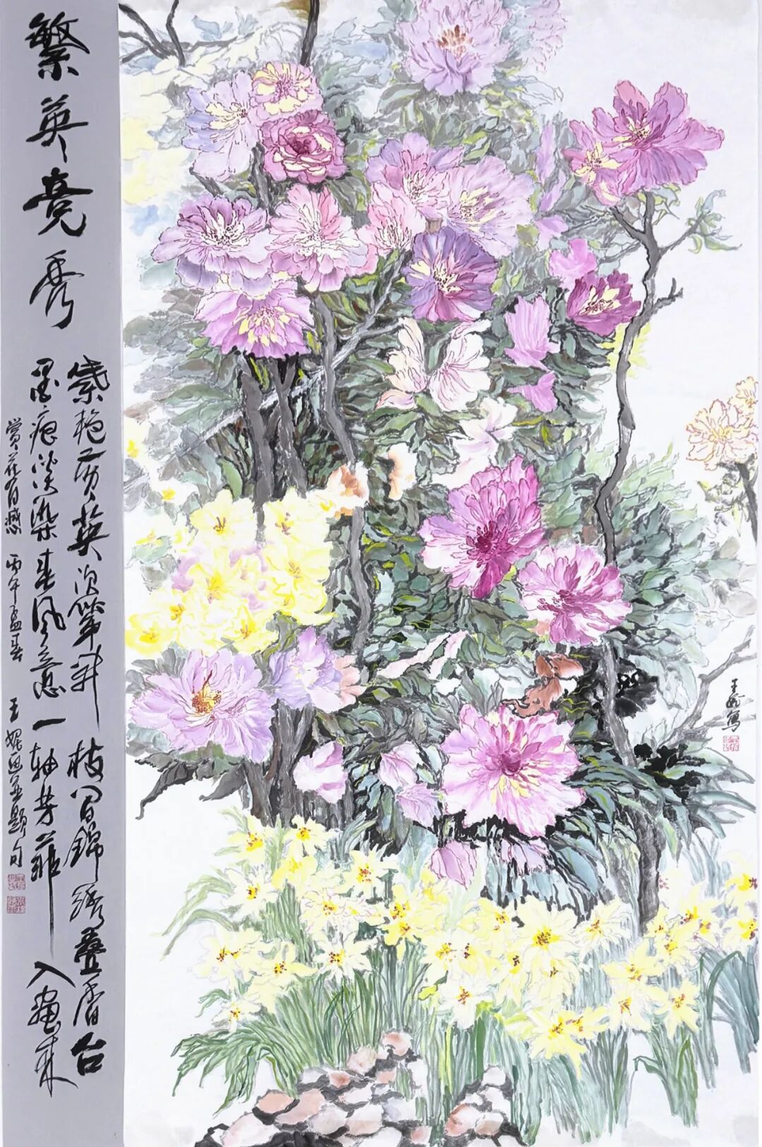 王妮 《繁英竞秀之牡丹》 中国画 180×125cm 2025