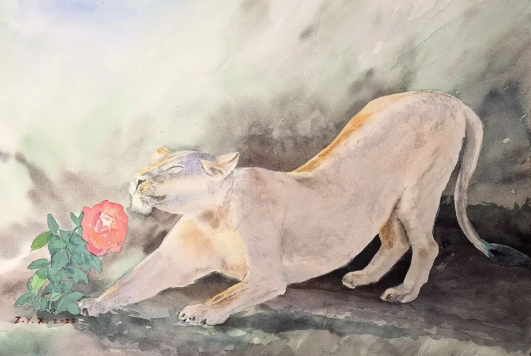 赵艳霞 《细嗅玫瑰》 纸本水彩 48.5×71cm 2025