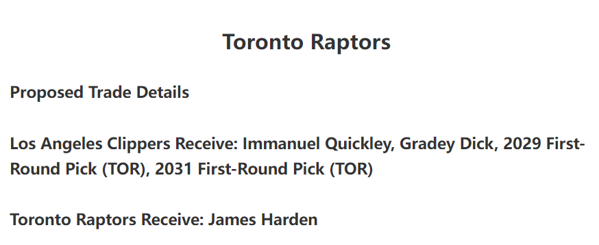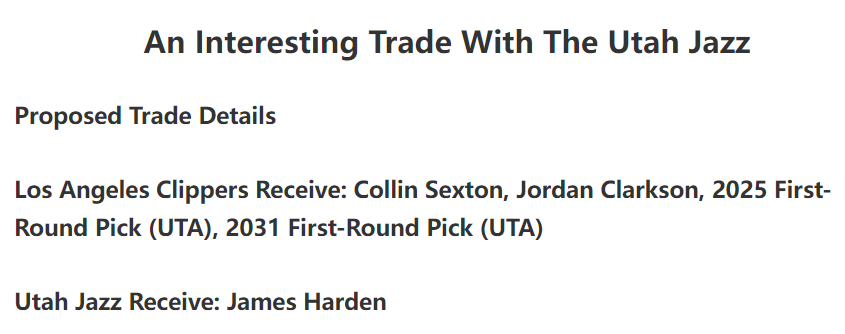快船可以用他追求克拉克斯顿+卡梅伦约翰逊,或者掘金的波特+纳吉+沃特森+31年首轮,或者是鹈鹕的锡安+25年首轮签。小卡的交易行情不如哈登,因为连续几年都无法保持健康状态,身体很可能无法恢复到巅峰状态。当然,哈登完全可以主动跳出球员选项。但用薪资专家的话说,争冠级别球队不需要哈登这样的持球大核心,摆烂球队也不需要,更何况他很难再拿大合同,他只能听天由命。快船也可以继续保留小卡+哈登的阵容,但真等到明年夏天,可能首轮签都换不来了。