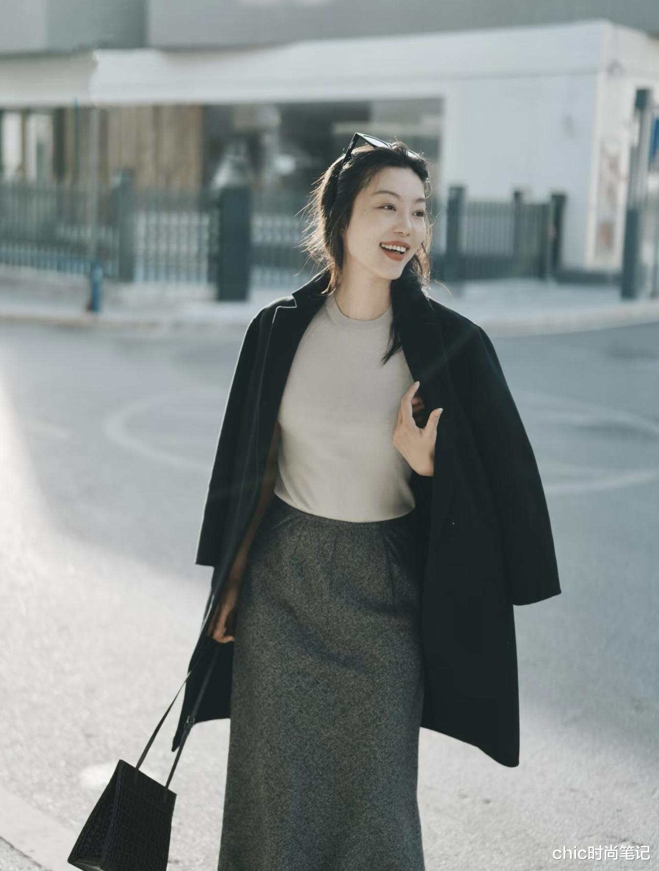 自带魅力气质的女性很多都是经历了岁月的洗礼,成熟且自信,ovv品牌的格调与之非常相符,简单的一件黑色呢大衣和灰色半身长裙,直接把近期最流行的格雷系穿搭拿捏。