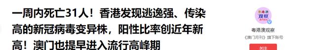 一周内死亡31人!香港发现逃逸强、传染高的新冠病毒变异株,阳性比率创近年新高!澳门也提早进入流行高峰期 - 粤港澳观察