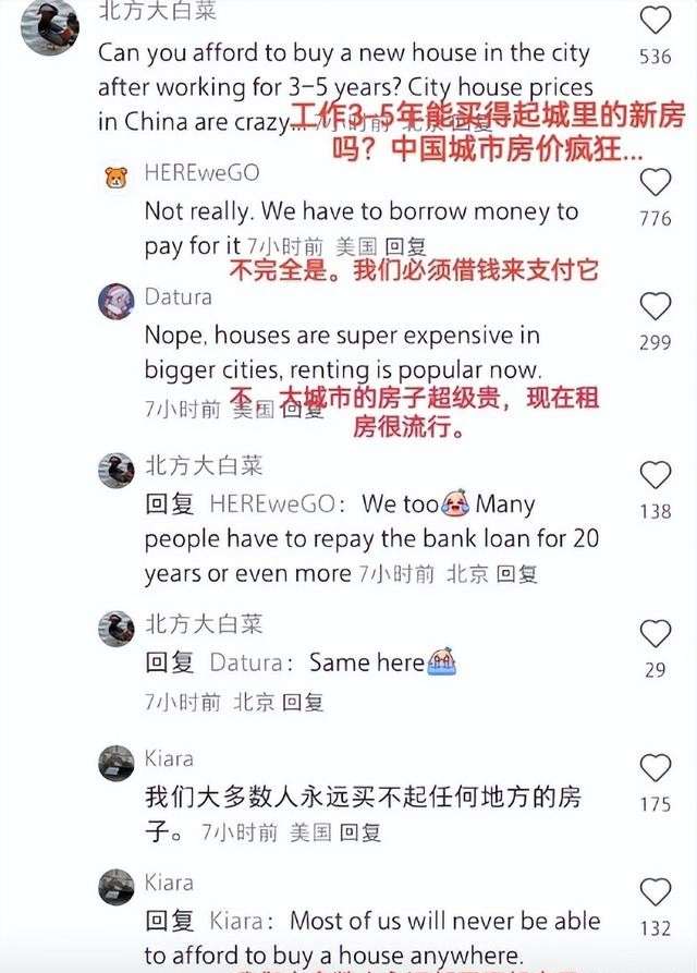 不仅如此,其实一位网民为“kiara”的美国网友更是这样说道:“我们大多数人永远都买不起房子。”
