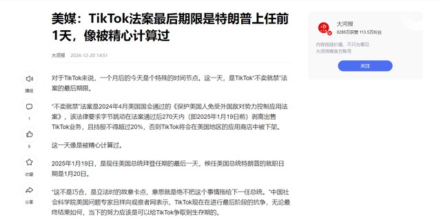 据悉,根据国内有关媒体的报道下,海外版抖音将于1月19日正式禁止在美国使用。