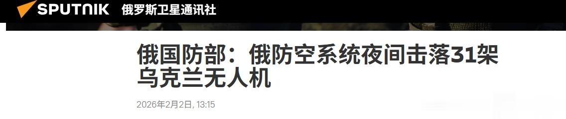 01,不到72小时,停火被撕毁,乌军炸了俄境内当地时间2026年2月1日至2日,乌克兰武装部队突然向俄罗斯全境发射超百架自杀式无人机。2月2日,俄罗斯国防部称,俄军防空系统一夜之间在多地上空击落31架乌方无人机,并通报:“执勤防空系统拦截并摧毁了31架乌克兰自杀式无人机。”其中,别尔哥罗德州上空击落22架,克拉斯诺达尔边疆区4架,罗斯托夫州2架,阿斯特拉罕州、布良斯克州和库尔斯克州各1架。
