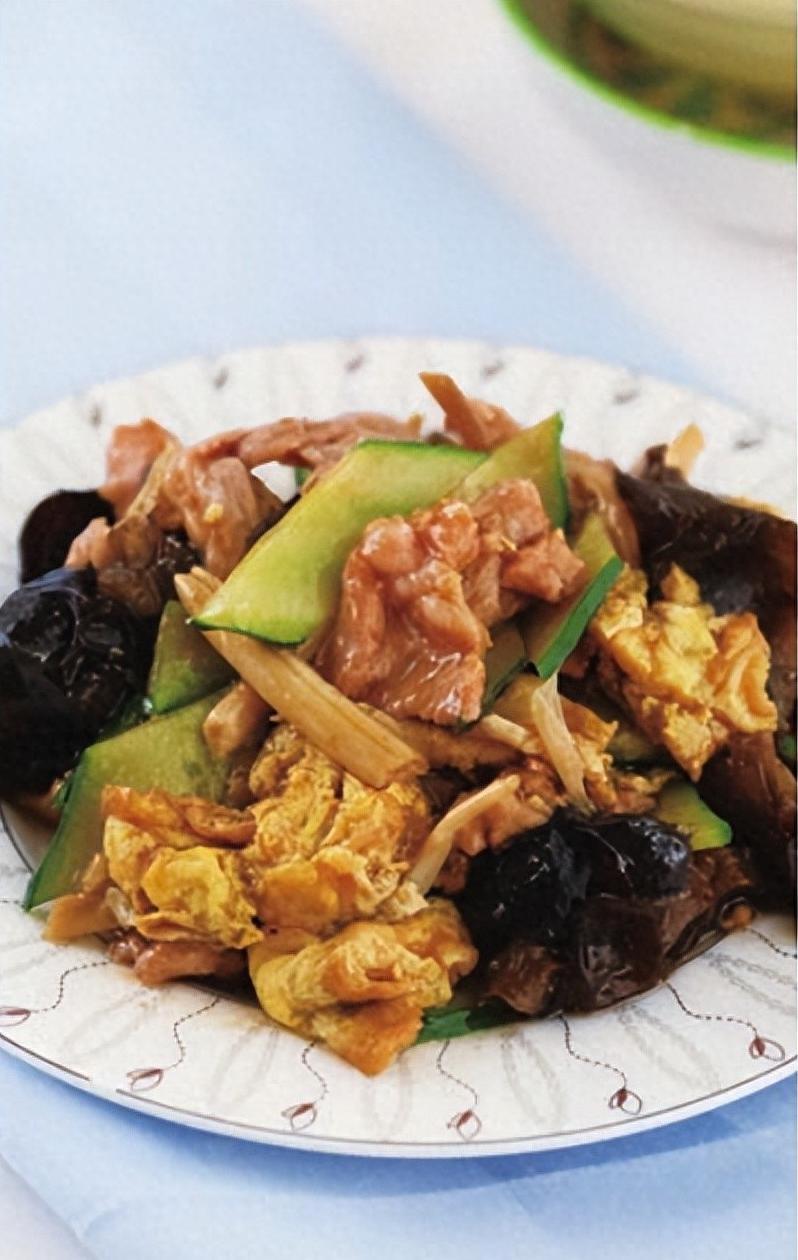做法也简单,比如:把木耳泡发,黄花菜泡软,黄瓜切片,里脊肉切薄片,葱白切段。
