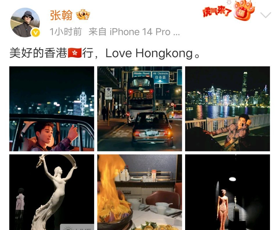 3月29日,张翰再次更新微博,一句“美好的香港行,Love Hongkong”,配上在香港参加艺术活动的照片,瞬间点燃了粉丝们的热情 。