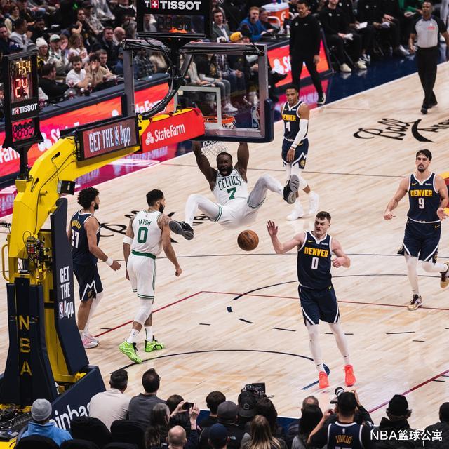 威少抢断塔图姆,沃特森空接打进,霍福德外线不进,威少冲击篮下打成了2+1,丹佛回敬7比0的攻势,比赛逐渐进入白热化阶段。霍勒迪2罚全中,威少失误,塔图姆中距离取分,绿军稳住局面。布朗进攻犯规,穆雷中距离得手,波尔津吉斯2罚1中,塔图姆大帽穆雷。霍勒迪、威少各有上篮得分,霍勒迪轰进三分球,凯尔特人领先14分得以收割比赛。沃特森扣篮,比赛时间走完。最终,凯尔特人以118比106完胜掘金。
