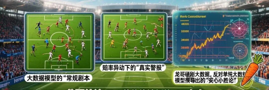 大数据模型(雷达)多次指向“阿森纳不败,但平局需防”,这与市场狂热的“客胜独赢”情绪(胡萝卜)形成对抗。