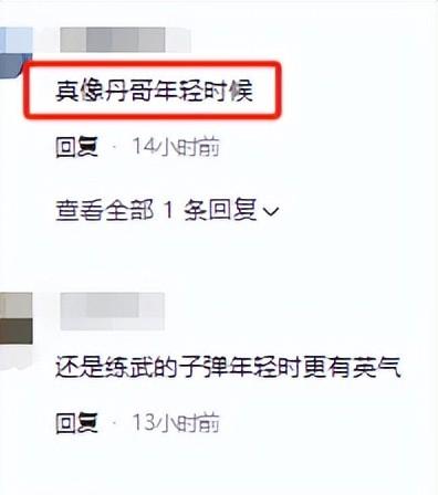 许多网友在看到父子俩的合照后,都惊叹于他们外貌的相似度。