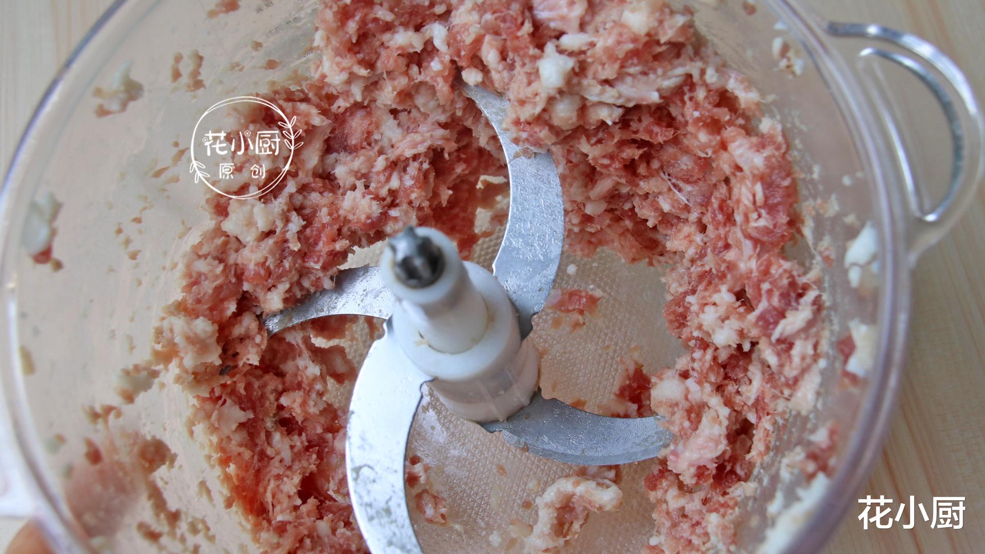 第三步:准备一块五花猪肉,将它改刀成小块后,用绞肉机绞成肉沫;