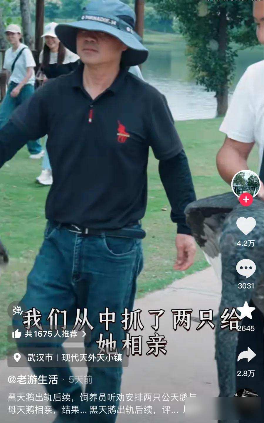 这事最开始是游客发现的,新母鹅来了之后公鹅就不回家了。母鹅开始还跟着,后来干脆不搭理任何人。饲养员试过让它们住一起,但公鹅根本不理老伴,反而跟新鹅更亲。有次母鹅喝水,公鹅直接上去咬,差点打起来。