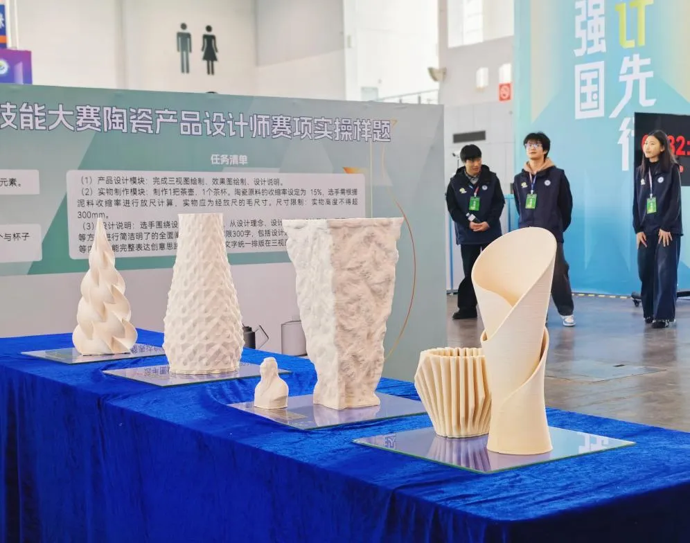 赛场内,数字技术已从辅助工具演变为创意语言。选手们熟练运用3D建模与数字渲染技术,将构思快速可视化。赛区入口处陈列的3D打印陶瓷作品,不仅是技术展示,更是产业未来方向的直观预示。大赛同时以开放姿态,积极吸引工业设计等跨界人才参与。“他们可能不熟悉传统拉坯,但能借助数字工具将创意高效落地,为陶瓷行业注入全新的问题解决视角。”谢强解释道。这种“技术+设计”的双重能力,正成为新考核体系下的关键优势。