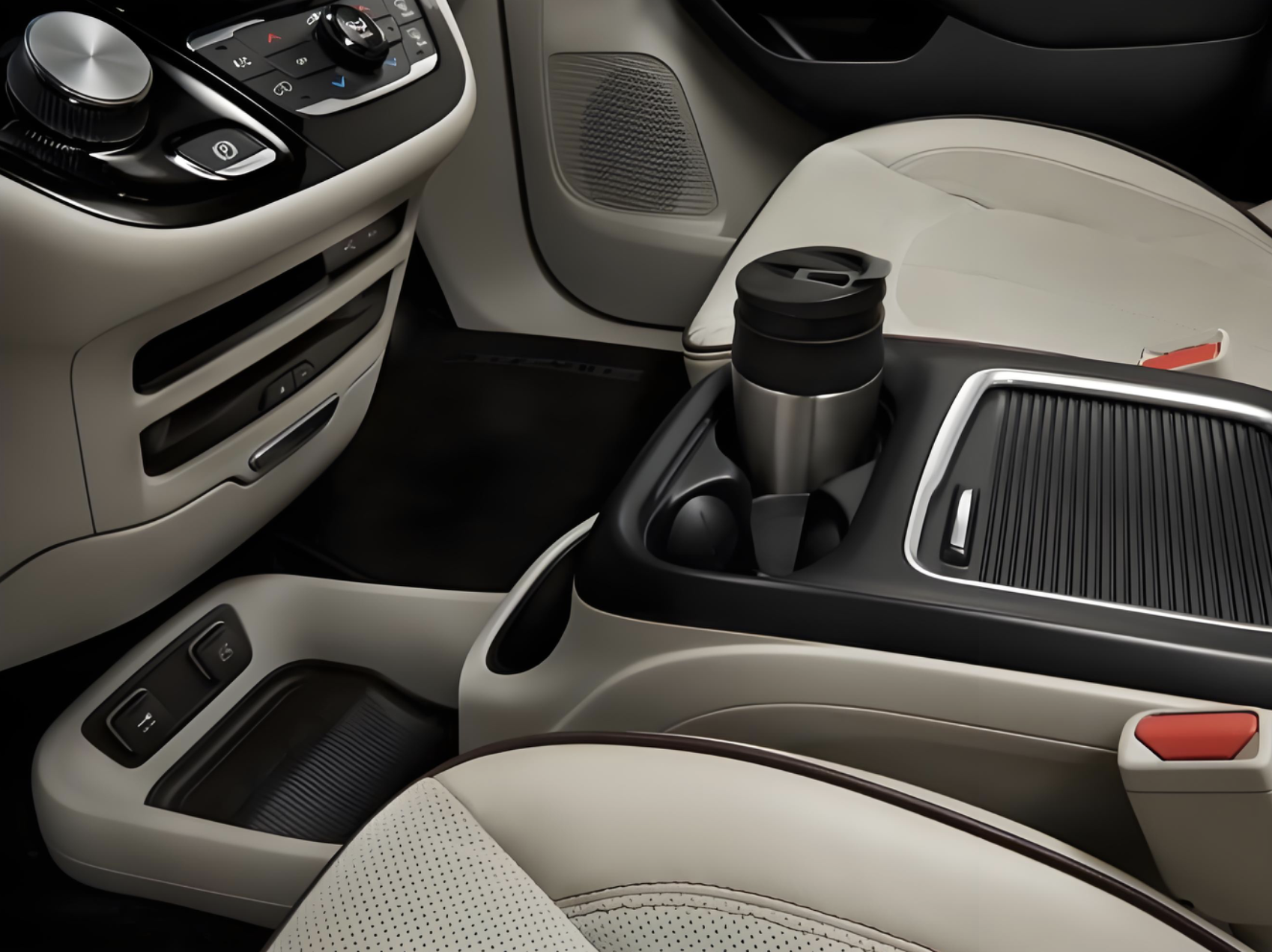 进入车内,克莱斯勒Pacifica大捷龙采用了大面积米白色软性材质和黑灰色皮革材质的交替铺陈,加入了大量黑色钢琴烤漆饰板,银色金属饰条,大颗粒旋钮,还有排列整齐的、类似“钢琴键”的物理按键。中控台配备了经典的三辐式多功能方向盘,操控岛还加入了经典的换挡手柄,带来了更好的操控体验。科技感方面,该车配备了全液晶仪表、10.1英寸中控屏、副驾驶多媒体液晶屏以及后排多媒体娱乐大屏,内置Uconnect 5娱乐系统并支持无线Apple CarPlay和Android Auto手机互联。车内提供了7座或8座布局,并依旧保留Stow 'n Go座椅功能,可以快速折叠并形成纯平表面,丰富户外生活场景。还具备L2级驾驶辅助功能。