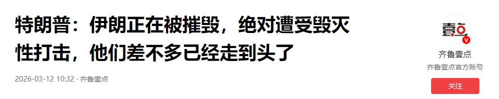 特朗普:伊朗正在被摧毁,绝对遭受毁灭性打击,他们差不多已经走到头了 2026-03-12 10:32·齐鲁壹点
