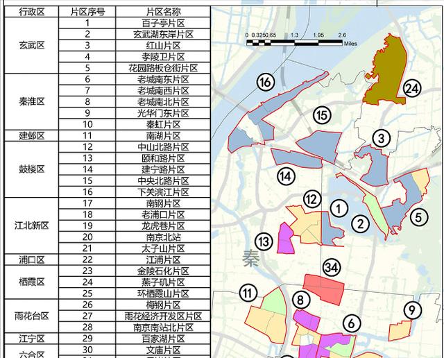 1、全市共划定更新片区34个,包含河西秦虹片区、南湖片区,江北南钢片区、老浦口片区、龙虎巷片区,城北金陵石化片区、燕子矶片区,城南梅钢片区、雨花经济开发区片区、南京南站北片区等;
