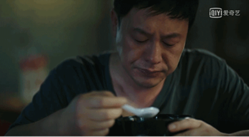 《隐秘的角落》里,刚刚丧女的朱永平深夜出来买馄饨,摊主不知道他家庭的变故,照例给了他一家三口的分量,在无人的大排档,隐忍已久的情绪突然决堤,一个无奈却仍有爱的爸爸将碗馄饨吃到了观众的心里。