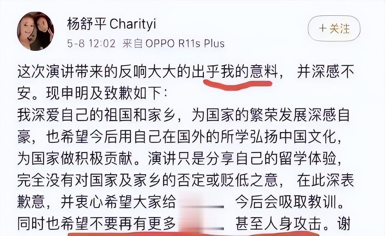美国梦碎,何去何从?舆论曝光后,杨舒平遭到了国内一众网友的斥责和辱骂,或许是因为觉得惹了众怒。