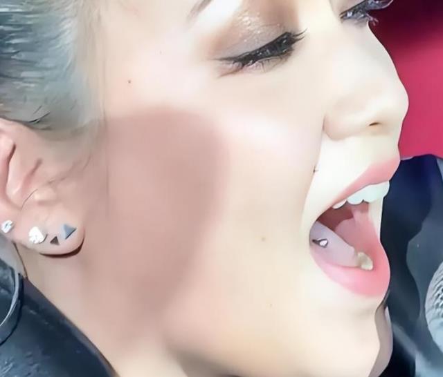 追赶潮流的人专门把头发染成白的,也不是什么稀奇事,但是从她的舌钉和纹身,让观众感觉到她有点叛逆过头了。