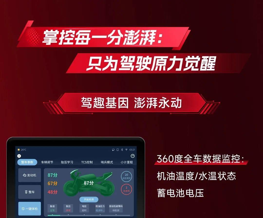 更进一步,ParaPal 2.5还提供了一个令人惊喜的功能:车辆评分。通过结合赛421本身的丰富配置,系统能够实时监控机油、水温、电池、胎压、油门开度等多种状态,并根据这些数据对车辆进行评分。 这就好比给你的摩托车做了一次全面的“体检”,让车主更全面地了解爱车状态,以便更好地进行保养和维护,延长车辆使用寿命。 这项功能不仅提升了驾驶体验,更是体现了QJMOTOR对用户负责的态度。