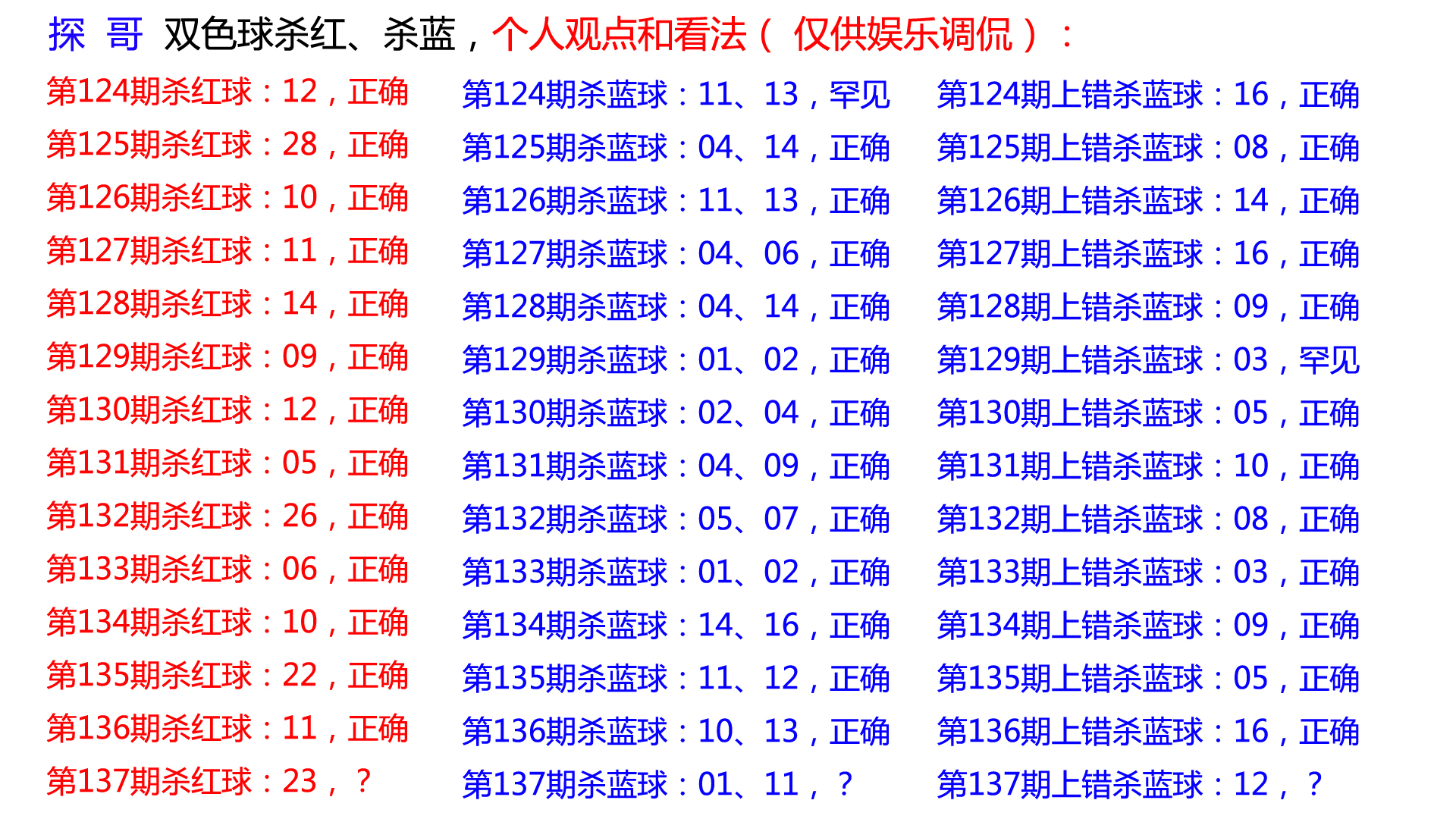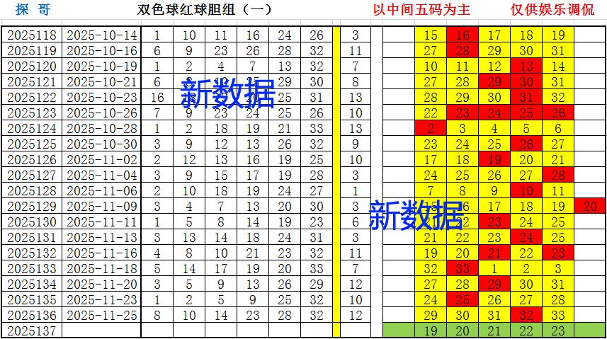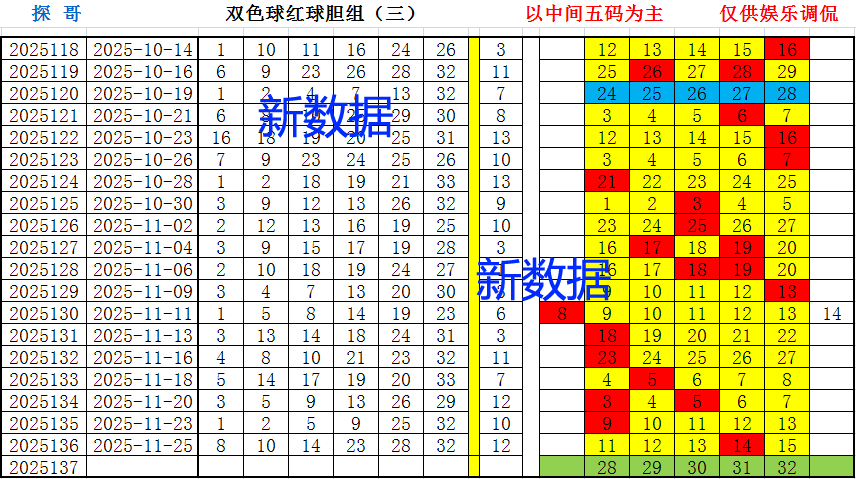 自双色球第137期开始,胆组一和胆组三更换新数据,希各知照。