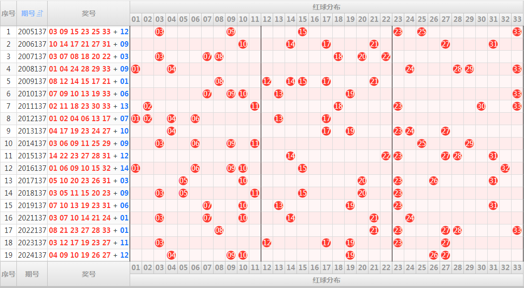 六、历史同期,红球开奖号码和走势图(历史数据演示):