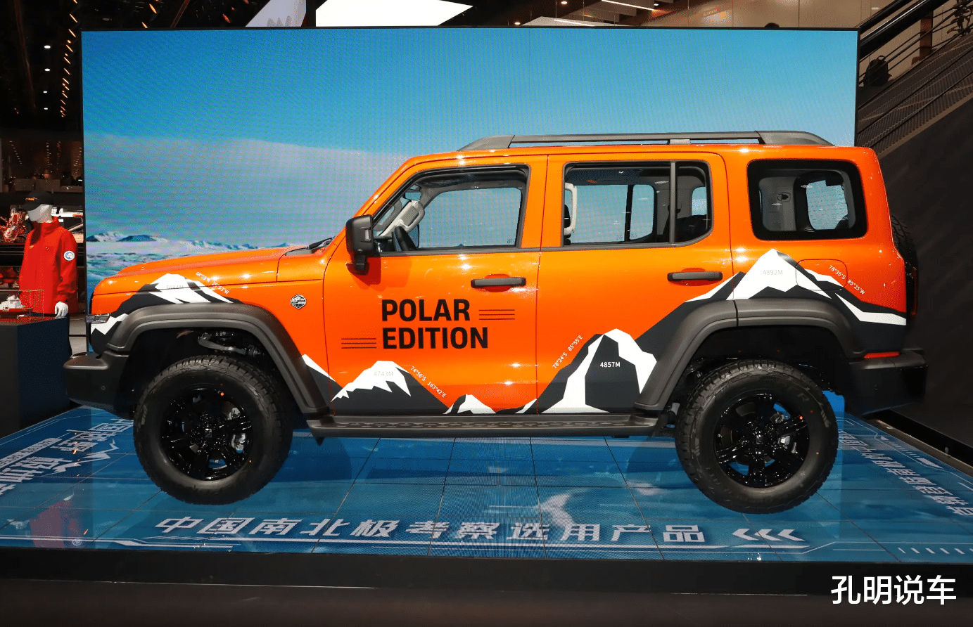 外观方面主要是增加了一些专属的基地版本车身拉花,特别是车身侧面可以看到南极冰山装饰。细节上提供有更丰富的极寒选装包,比如可以加装前挡风玻璃以及喷嘴的加热系统,也可以选装专门应对雪地的全地形at越野轮胎。当然主体风格还是经典设计,圆形复古大灯,尾部的全尺寸越野小书包备胎,硬派的感觉并没有轻易去修改。