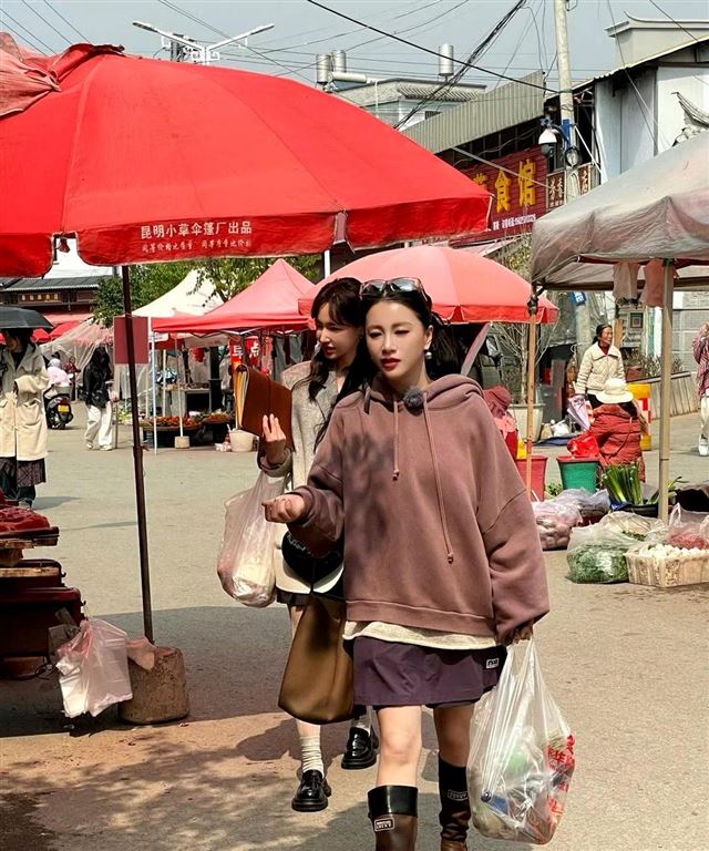 在云南的集市上,她们不仅买菜,还骑着单车,仿佛回到了无忧无虑的少女时代。